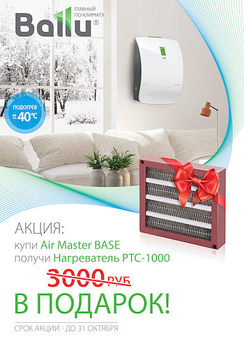 А до 31 октября при покупке приточно-очистительного комплекса Ballu AirMaster нагревательный элемент стоимостью 3.000 рублей Вы получаете совершенно бесплатно!