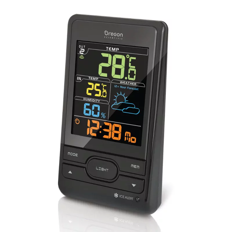 Погодная станция (с термометром, цветной дисплей) Oregon Scientific BAR206S-b - удобный и функциональный прибор для измерения уровня влажности и температуры воздуха внутри комнаты и на улице. Точное измерение показателей воздушной среды позволяет нам контролировать микроклимат в помещении и быть в курсе погоды за окном.
