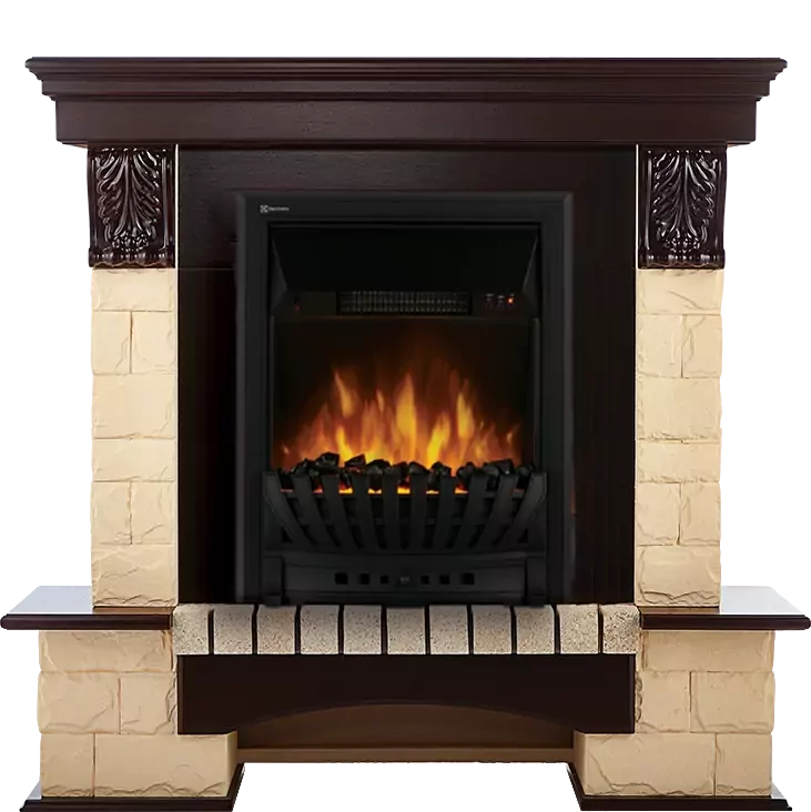 Портал Electrolux Forte Classic камень бежевый, шпон темный дуб - один из вариантов большой линейки порталов от Electrolux. Привлекательный дизайн и очень доступная стоимость являются ключевыми преимуществами порталов для электрокамина марки Электролюкс.