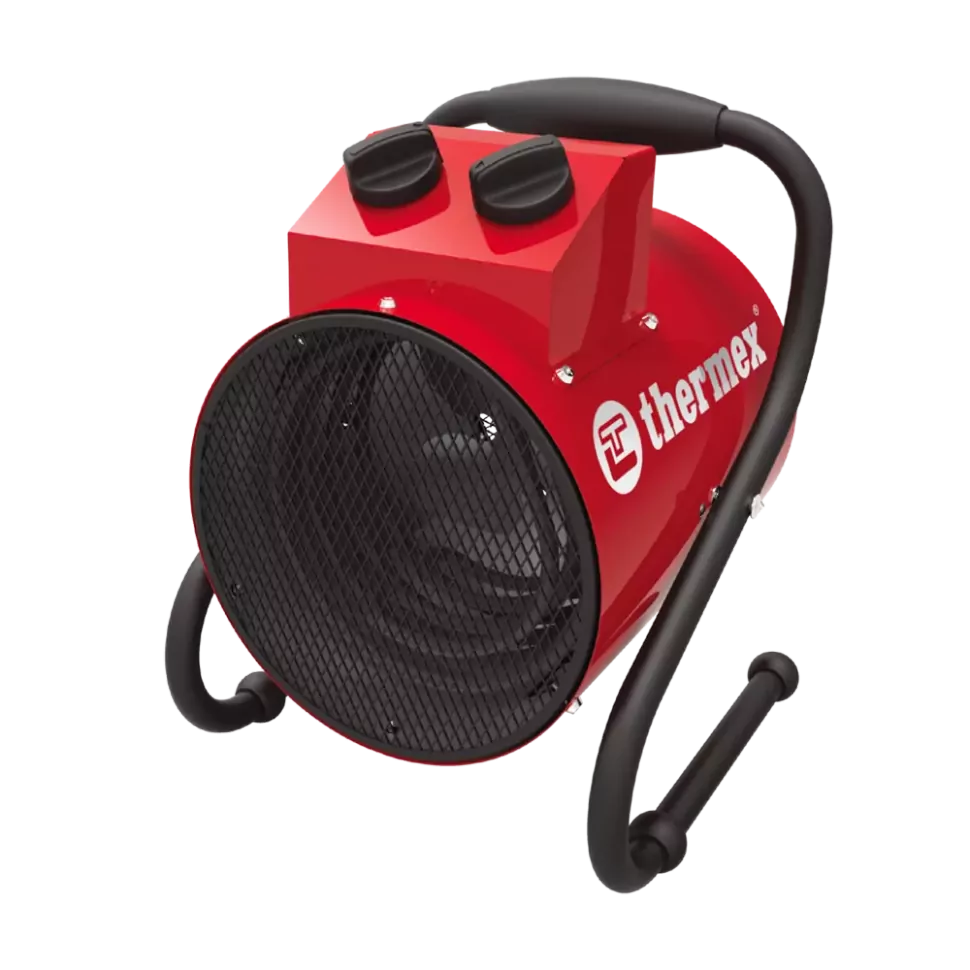 Вентилятор Термекс Bazooka 3 засасывает комнатный воздух, а электрический ТЭН его быстро прогревает, поэтому воздух поступает обратно в помещение уже в нагретом состоянии. За счет высокого воздухообмена (максимально куб.м. в час) пушка прогревает комнату быстро и равномерно.